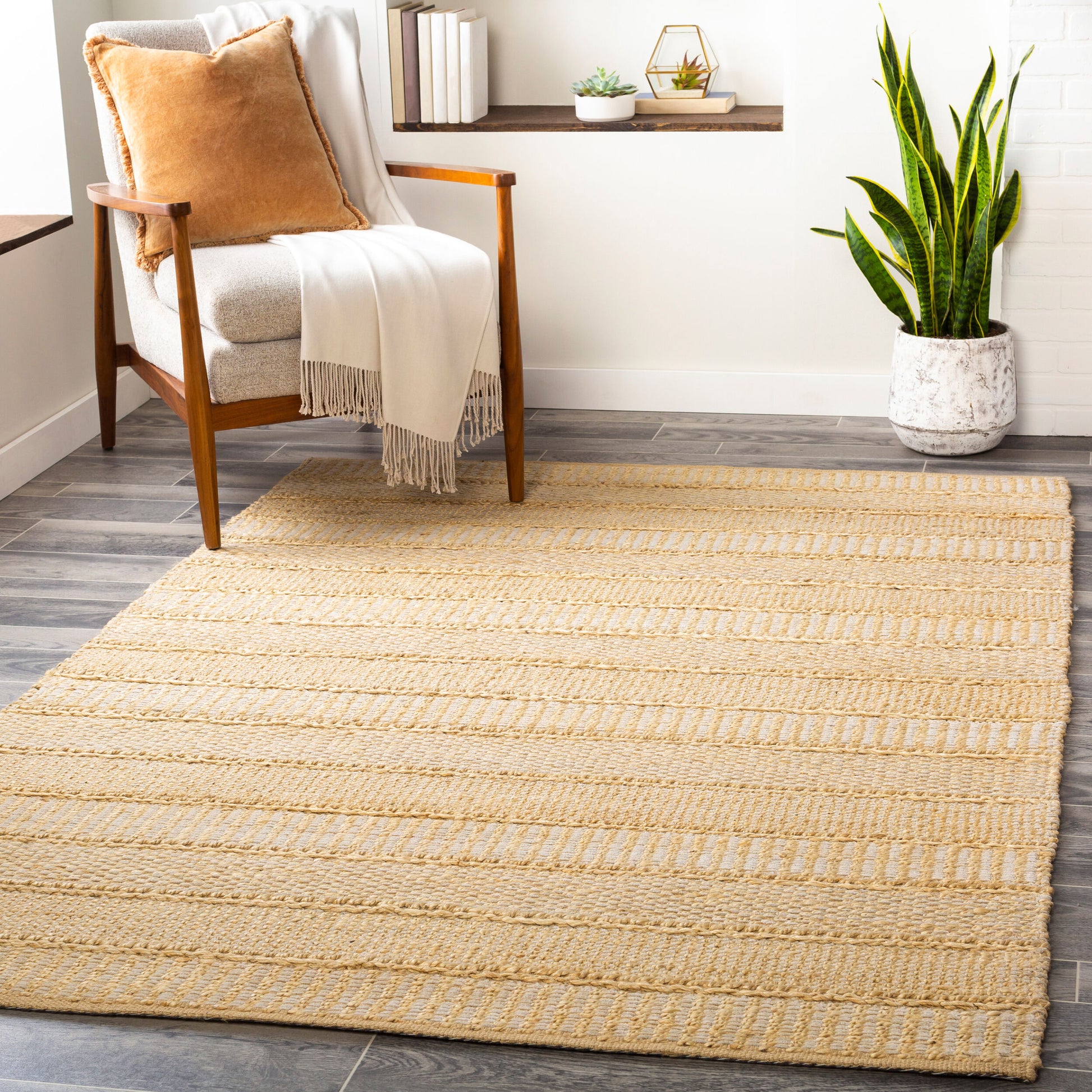 About : Esta alfombra Aria es perfecta para añadir un toque rústico a cualquier habitación. Tejida a mano en la India con una mezcla de rayón y yute, esta alfombra de tejido plano sin pelo está hecha para durar. Para que su Aria luzca impecable, le recomendamos usar una base y limpiar las manchas o en seco según sea necesario. Añada encanto y textura a su hogar con esta atemporal alfombra de tejido plano.