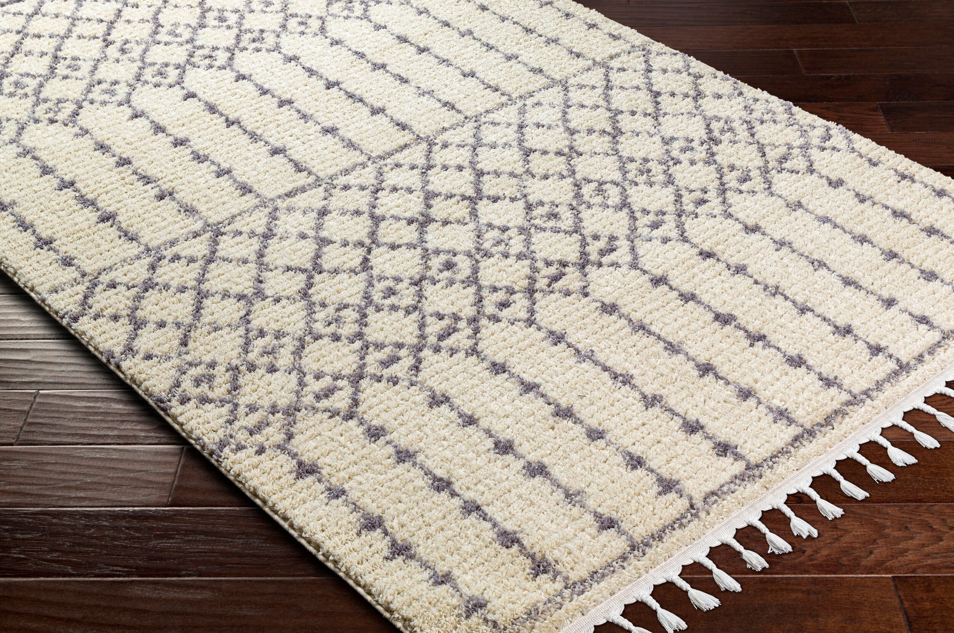 About : Esta alfombra Casablanca Shag aporta un toque internacional a su hogar. Con su pelo largo, hecha de poliéster y tejida a máquina, es resistente y elegante. Los flecos le dan un toque único al diseño de esta pieza de fabricación turca. Para garantizar un disfrute duradero de su compra, le recomendamos usar una base para alfombras. Este producto requiere una limpieza profesional para un cuidado óptimo.
