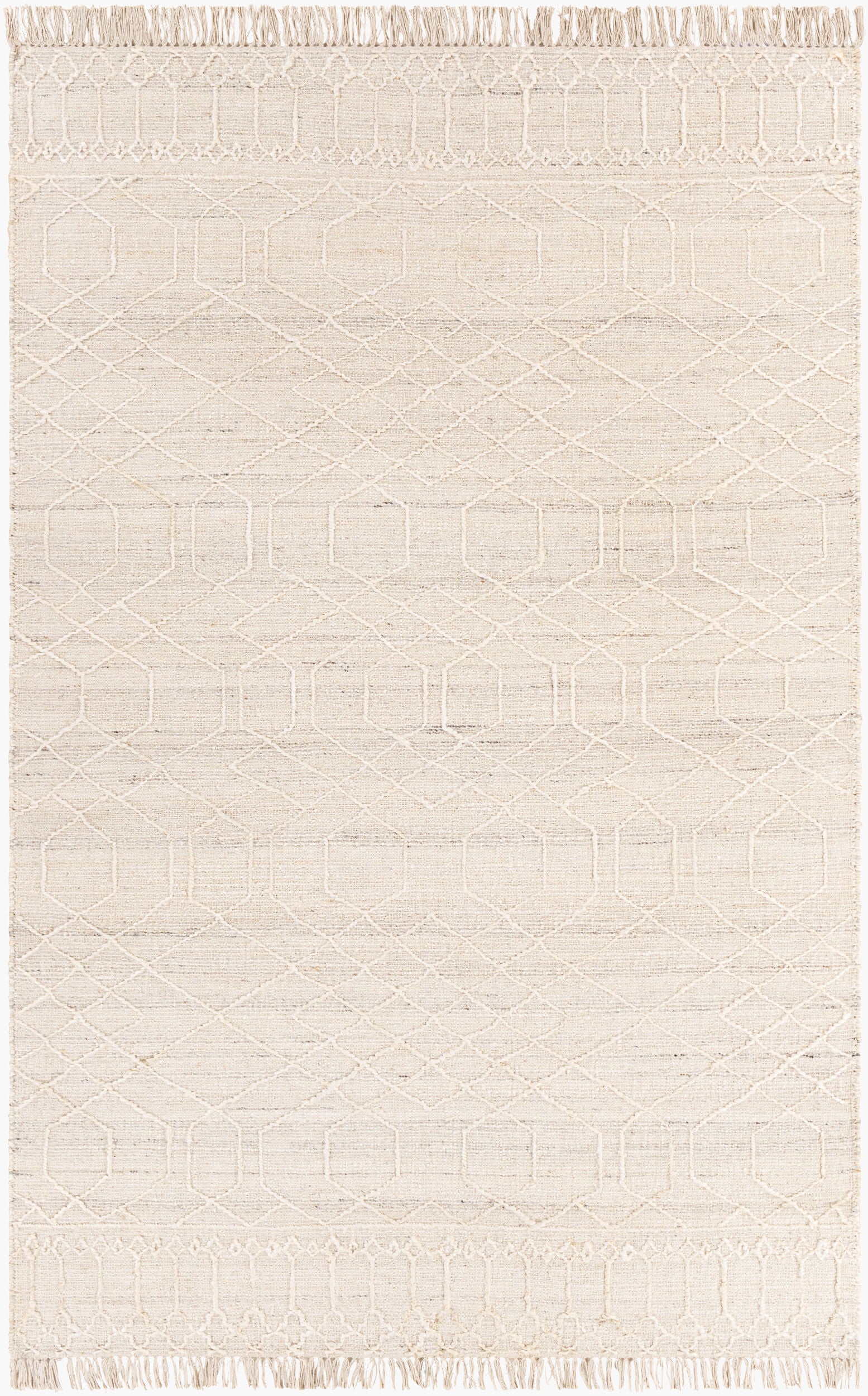 About : Esta alfombra Watford es el complemento perfecto para cualquier habitación. Con su estilo global y su tejido a mano, esta alfombra de mezcla de yute y lana presenta un diseño intrincado que aportará un toque único a su hogar. Los flecos le dan el toque final perfecto. Fabricada en India, recomendamos usar una base para mayor protección. Para un cuidado óptimo, se recomienda la limpieza en seco.