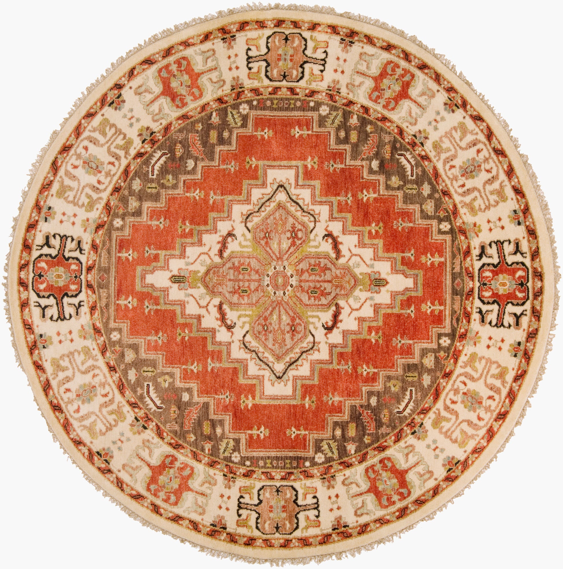 Alfombra redonda de lana Zeus ZEU-7800 de 2,4 m, hecha a mano
