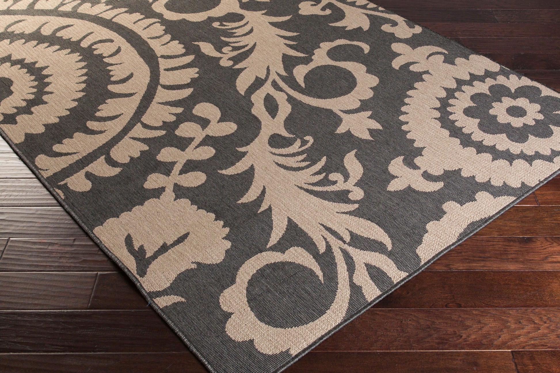 About : The Alfresco area rug is the perfect way to bring a touch of country cottage charm to your home. It's machine-woven in Egypt from Olefin, making it durable enough for high traffic areas and outdoor use. Its low pile provides a sleek and modern look, while its soft texture offers a comfortable feel underfoot. Plus, you don't have to worry about spills or stains as the Alfresco area rug is easy to clean - simply hose it off with water and hang it up to dry! To ensure maximum comfort and longevity, we recommend using an anti-skid rug pad (sold separately). Add the Alfresco area rug today for a classic yet stylish addition to your space.