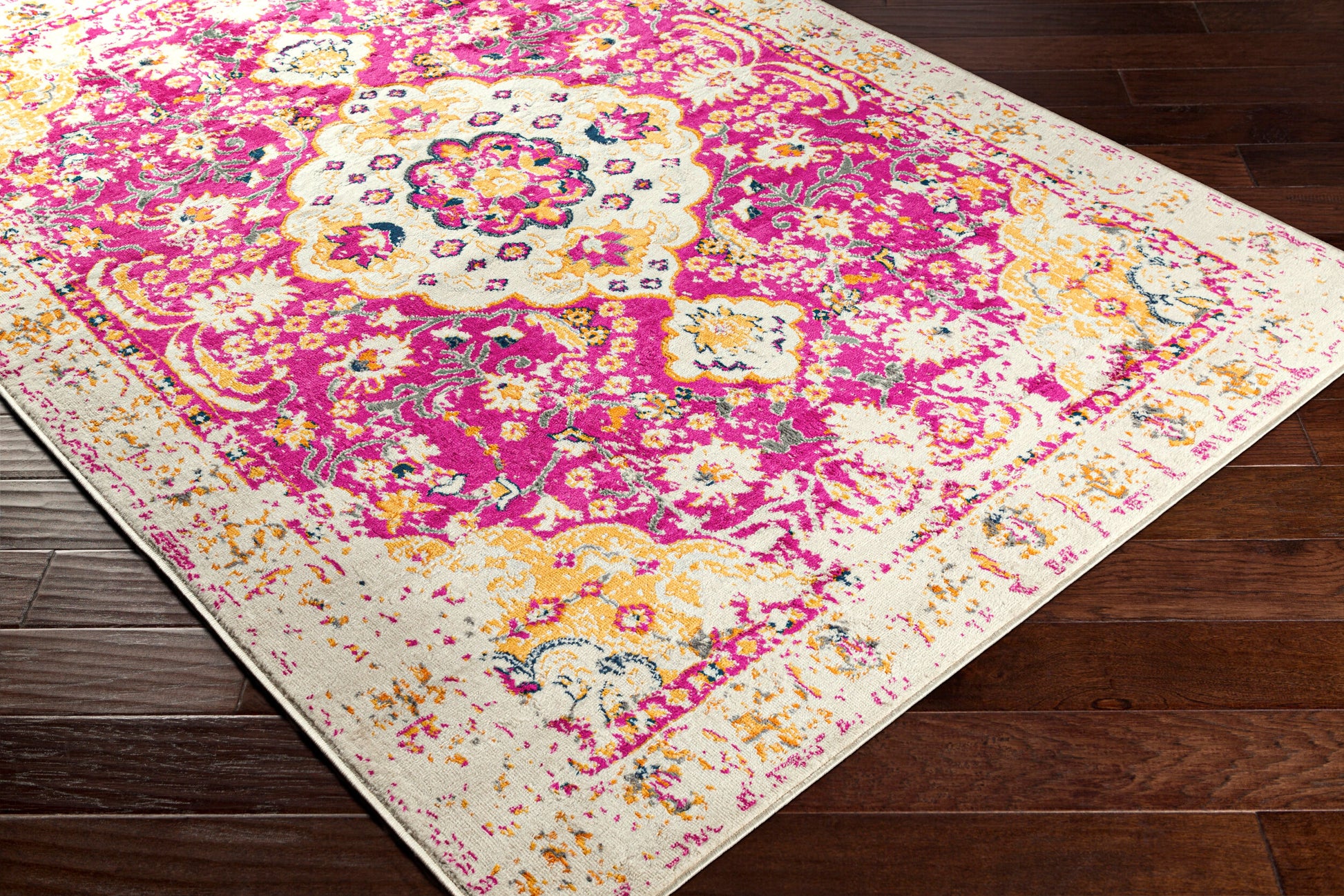 About : Enhance the aesthetic of any room with our Floransa area rug, a beautiful addition to your home decor. Made in Turkey, this machine-woven rug is crafted from durable polypropylene and features a medium pile that stands up well in high traffic areas. Its rich textures and versatile style make it an excellent choice for both traditional and modern spaces. We recommend using this rug with a pad to prevent slipping or sliding. Plus, its easy care instructions mean you just need to spot clean it with mild detergent, making maintenance a breeze. Add this Floransa area rug to your space and experience the perfect blend of function and style!
